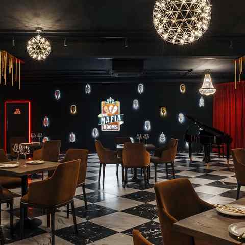 Главная концепция TheMafiaRooms (Зе Мафия Румс) — это игра в «Мафию» с элементами «падающих стульев», которая превращает процесс в яркое театральное действие. Сюжет развивается по строгим правилам: распределение ролей, противостояние мафиози и мирных жителей, дневные обсуждения и ночные решения. Участие ключевых персонажей — Шерифа, Доктора и Комиссара — добавляет глубины и непредсказуемости каждой партии. Для тех, кто ценит атмосферу и комфорт, предусмотрены залы разного стиля. Английская комната Shelby (Шелби) выполнена в строгом классическом дизайне, сдержанном и гармоничном. Итальянский зал Cosa Nostra (Коса Ностра) отличается яркостью и роскошью: бордовая мебель, декоративные элементы, а также современное оснащение — большой стол, диваны, караоке-система, PlayStation 5, ТВ в Full HD и высокоскоростной Wi-Fi.