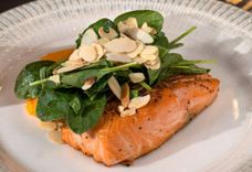 Лосось с морковно-цитрусовым кремом и свежим шпинатом