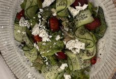 Салат с фетой, сезонной ягодой и соусом малиновый винегрет