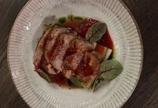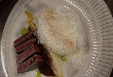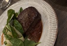 Стейк-скерт с перечным соусом и кремом из сельдерея