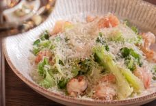 Салат с лососем, сезонной ягодой и соусом из печеного перца
